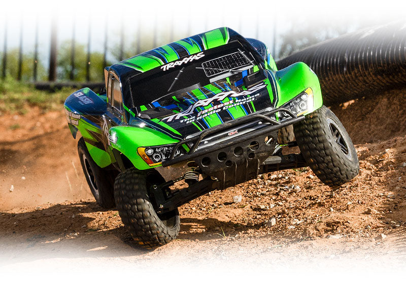 Traxxas Slash® puts you in the driver’s seat for intense fender-to-fender short course racing action at the track, or in your own backyard. Slash’s all-new BL-2s™ brushless power system delivers effortless power for all-day fun with a more responsive throttle and powerful acceleration. The rear-wheel drive Slash is purpose built to fly over jumps and rip full-throttle through the turns. The fully adjustable track-ready suspension replicates real-world dynamics for the most authentic short course racing experience possible.